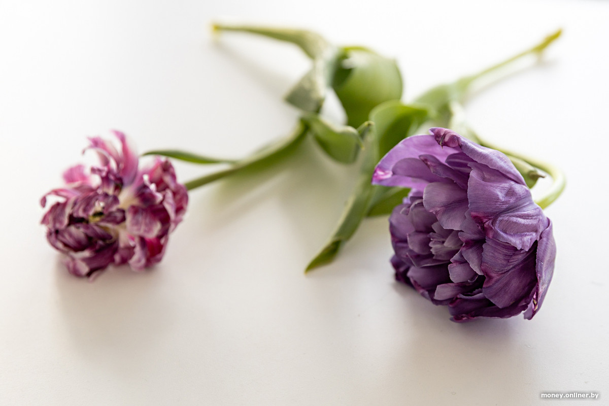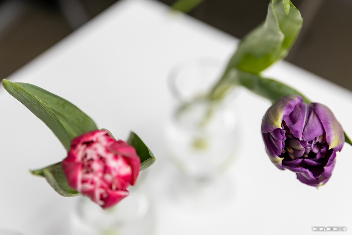 Наш видеооператор Роман выступает за тюльпаны: предполагает, что дольше всех продержится розовый, а сиреневый сдаст позиции первым. Алексей из SMM-отдела также считает, что долгожителем станет розовый тюльпан, но ставка по первому завядшему цветку у него другая — роза за 4,5 рубля. Наш редактор Ольга ставит на розы: эквадорская роза из перехода задержится на столе дольше всех, а роза из цветочного первой лишится статуса свежего цветка.