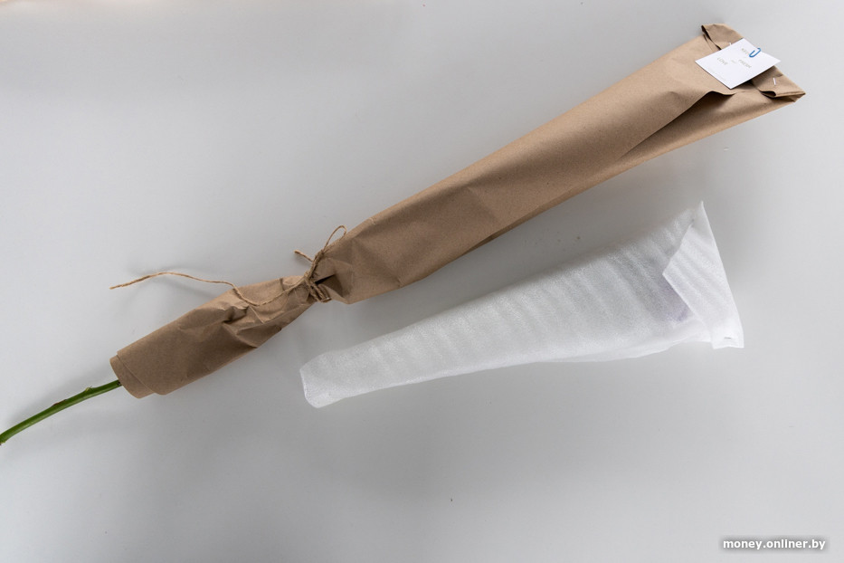 Снимаем бечевку, разворачиваем крафтовую бумагу, знакомимся с первой розой за 8 рублей.