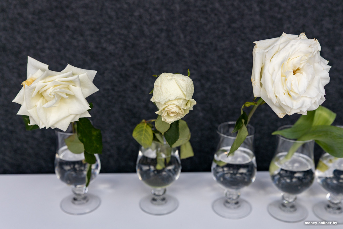 Помните ставки наших коллег? Роман посчитал, что сиреневый тюльпан завянет первым, но он, наоборот, выбился в финалисты. Алексей промахнулся с мнением про белорусскую розу: в реальности она не завяла первой, а хорошо шла в начале и точно не стала первым сошедшим с дистанции цветком. Ольга верно назвала отличившиеся цветы, но ее прогноз сбылся с точностью до наоборот: гонку цветочной жизни первой проиграла эквадорская роза из перехода, а в число победителей вошла другая импортная роза — голландская от флористов.