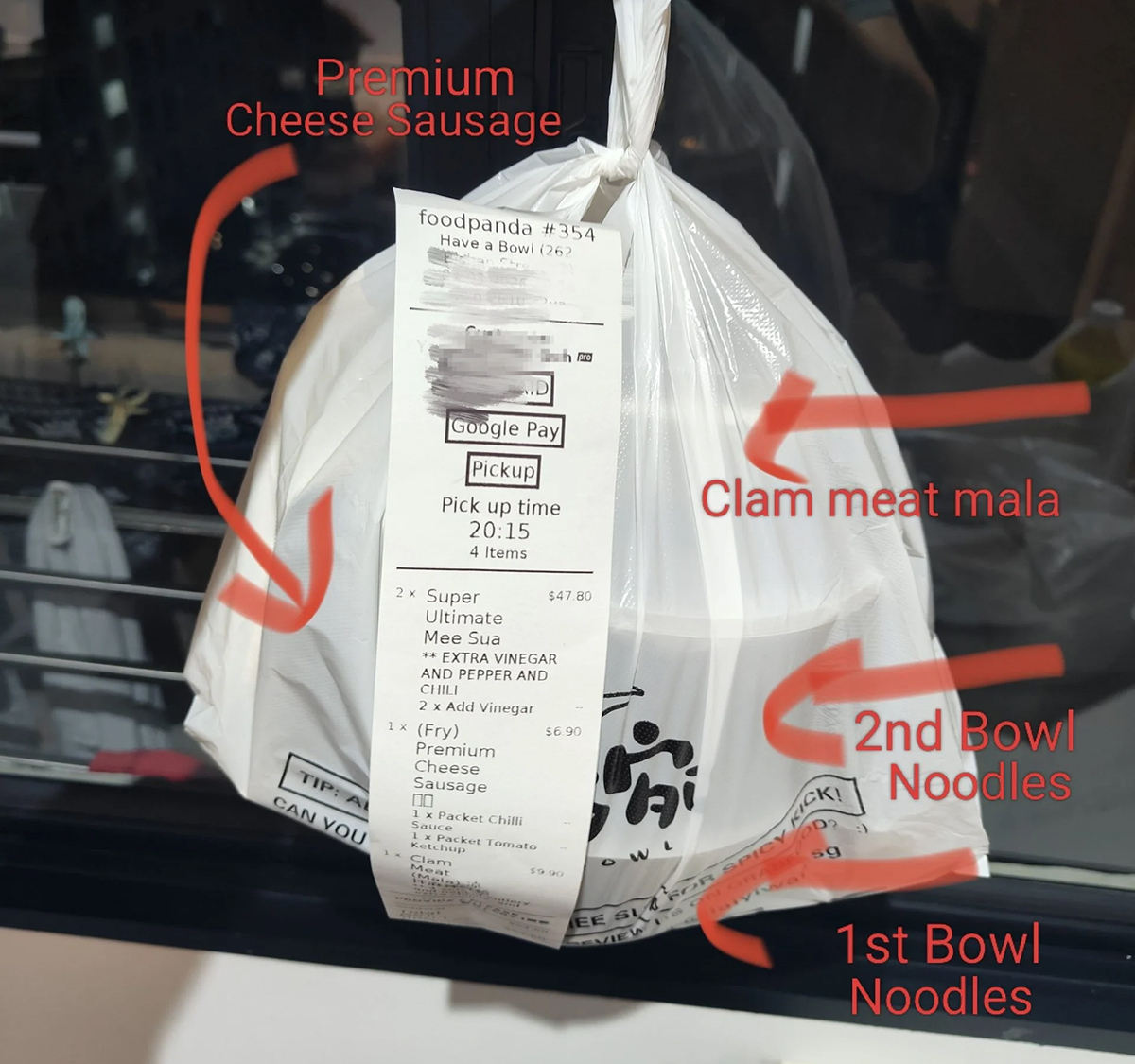 Как пишет издание MS News, инцидент произошел вечером 7 марта. Около восьми часов клиент оформил заказ через платформу foodpanda на самовывоз. В меню было две порции Супер-ми-суа с мясом моллюсков и сырной колбасой и другие закуски. Общий счет составил 64,60 сингапурского доллара (50,75 доллара США).