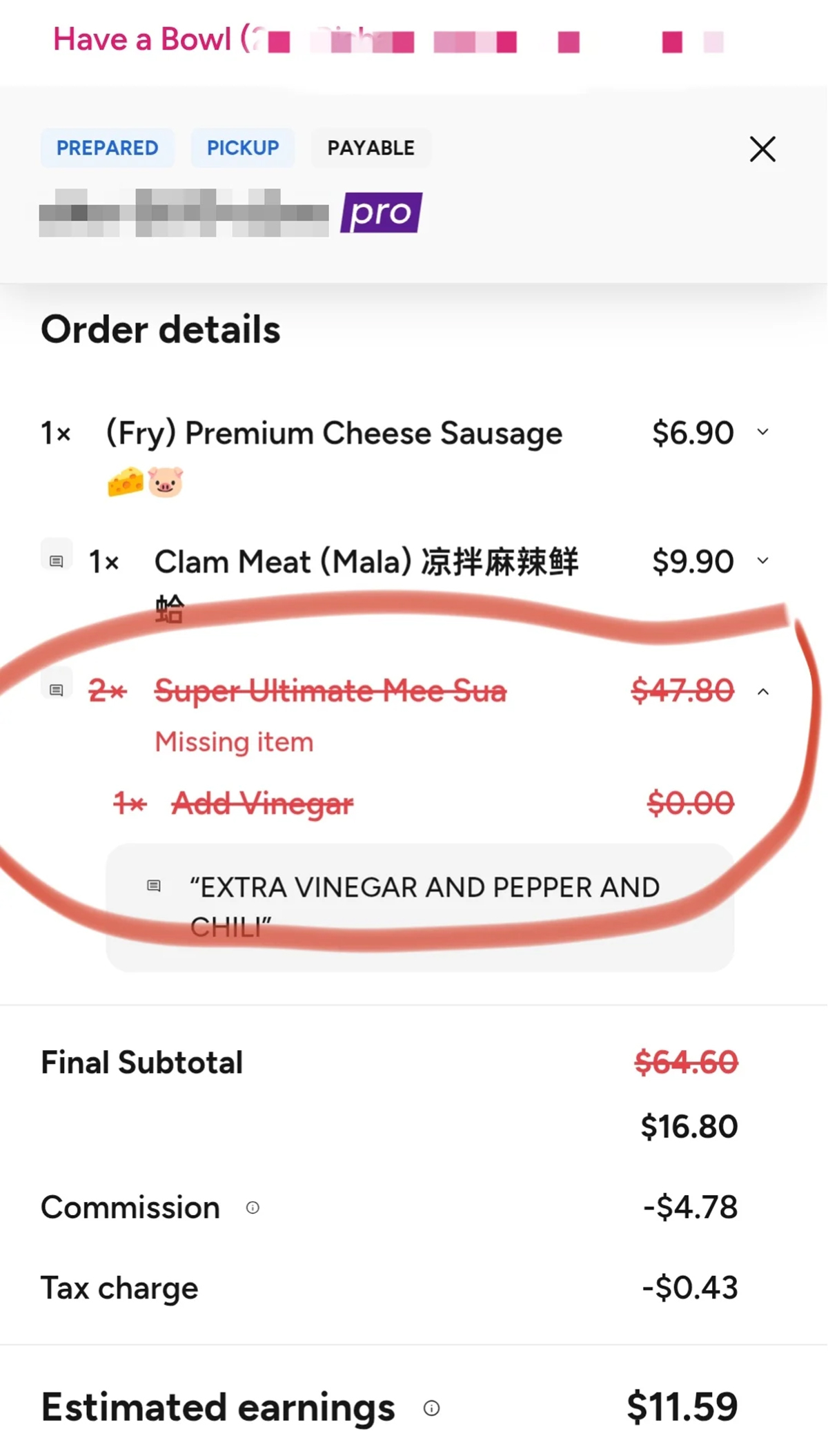 Но около часа спустя в Have A Bowl получили уведомление от платформы foodpanda: клиент жалуется, что в заказе не хватает (внимание!) обеих порций лапши. Платформа отреагировала мгновенно. Сумму возврата просто вычли из дохода продавца. В результате за вечернюю работу домашняя кухня получила лишь 11,59 сингапурского доллара (около 9 долларов США) вместо положенной суммы.
