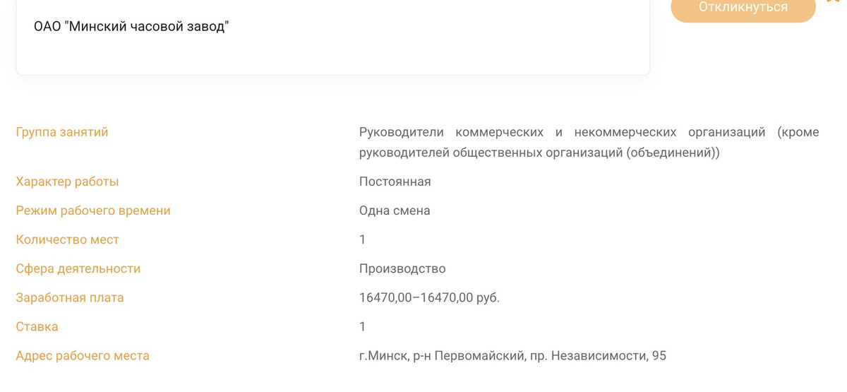 Такую зарплату предлагает Минский часовой завод. Предприятию нужен руководитель (судя по требованиям — топ-менеджер) на постоянную работу. Рабочее место — на проспекте Независимости, 95.