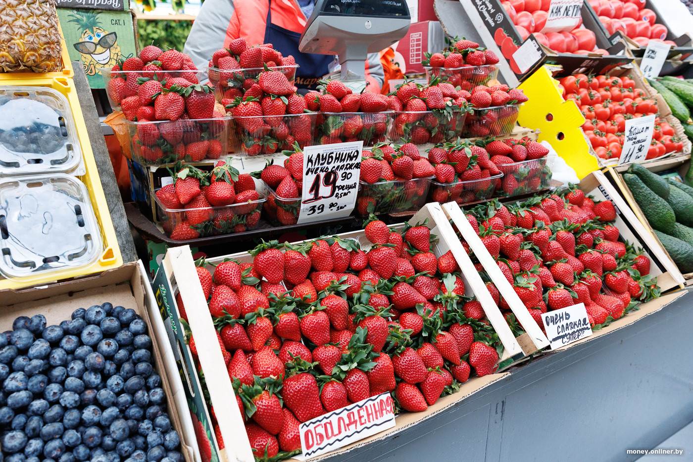 На прилавках уже появилась клубника. Если смотреть издалека, цена кажется удивительно низкой для середины марта — от 17,5 рубля. Но стоит только приблизиться, становится понятно: это стоимость за полкило. В эпитетах продавцы себя не ограничивают, называя клубнику из Греции «обалденной», «очень сладкой» и просто «супер».