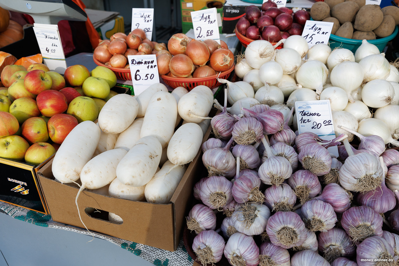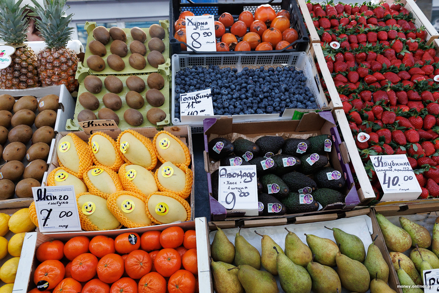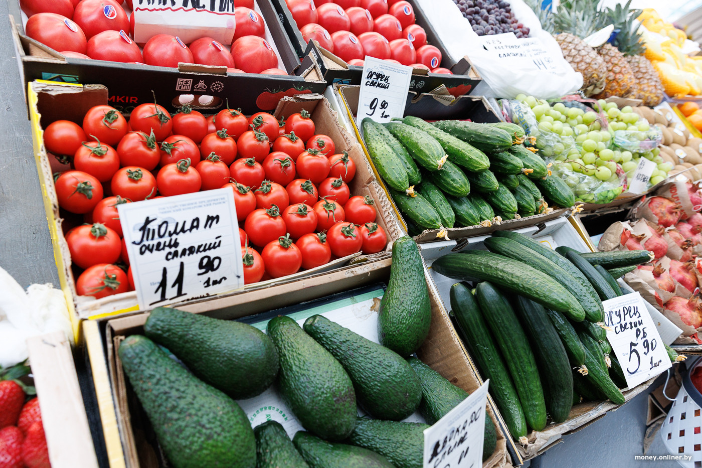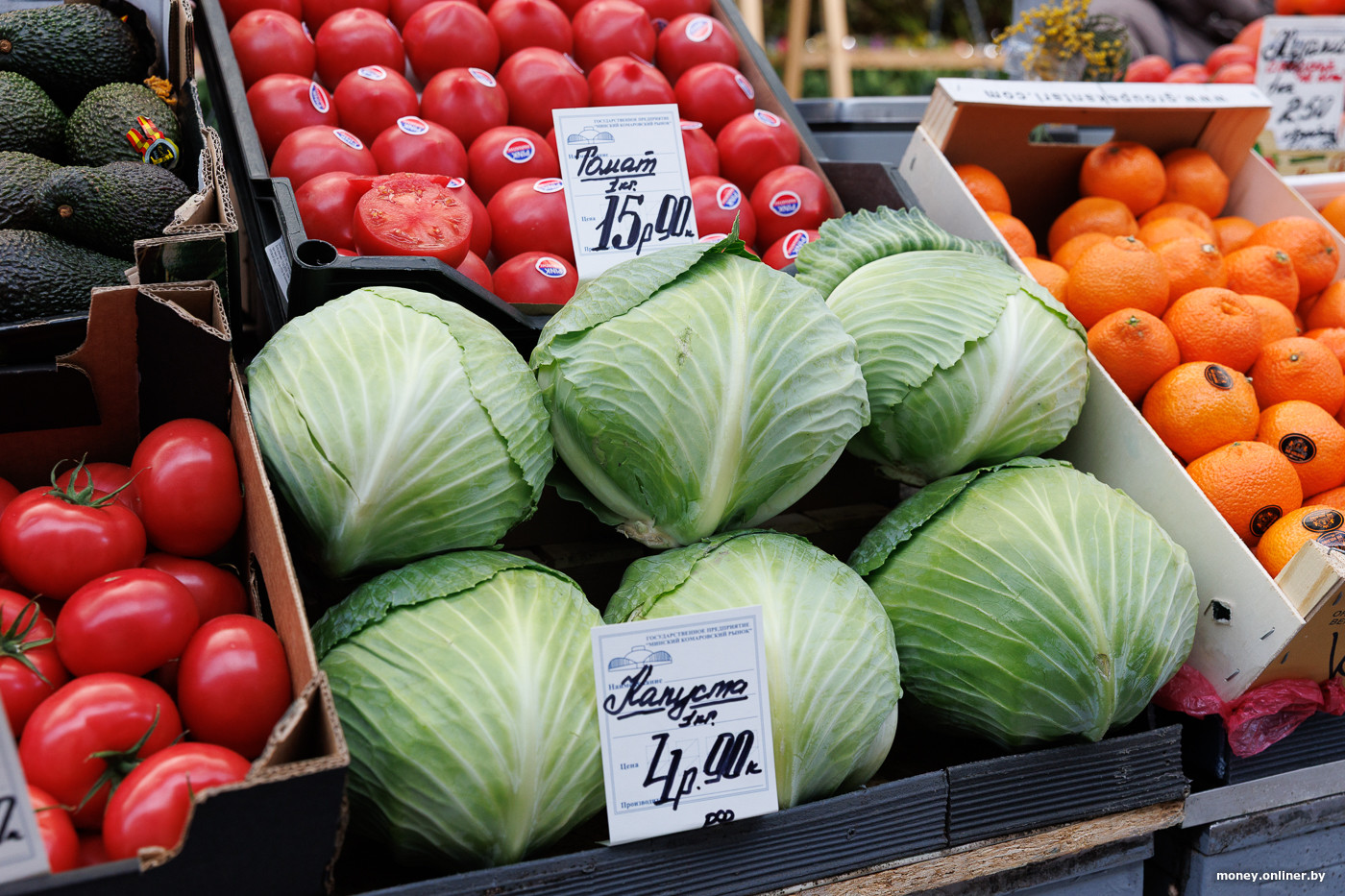 Что по другим овощам? Картошка в среднем стоит по 2,80—3 рубля за кило. Но сорт «Королева Анна» дешевле — по 2 рубля. Капуста — 2—4 рубля, морковь — 2,5—3,5 рубля, свекла — 3,5 рубля, тыква мускатная — 5 рублей. Авокадо (относится оно к овощам или фруктам, мы все еще не выяснили) продают поштучно за 6—9 рублей в зависимости от сорта.