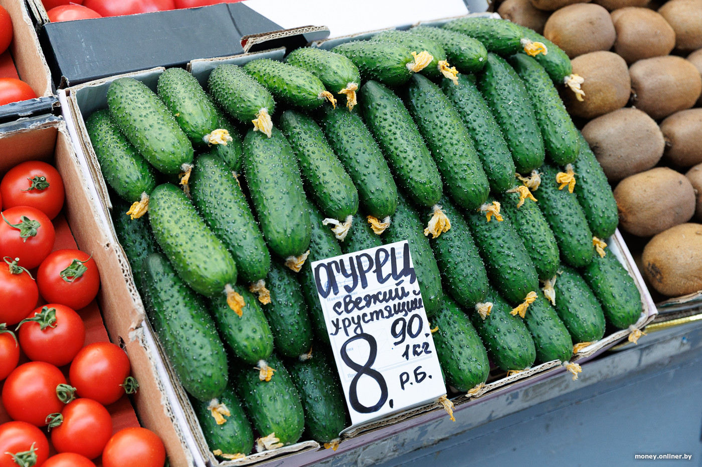 Хотя такими же характеристиками награждают и другие продукты. Так, можно найти «очень сладкий томат» за 11,90 (на этот раз за килограмм) и просто «сладкий» огурец за 9,90. «Свежие хрустящие» огурцы, выращенные в Беларуси, обойдутся в 8,90.