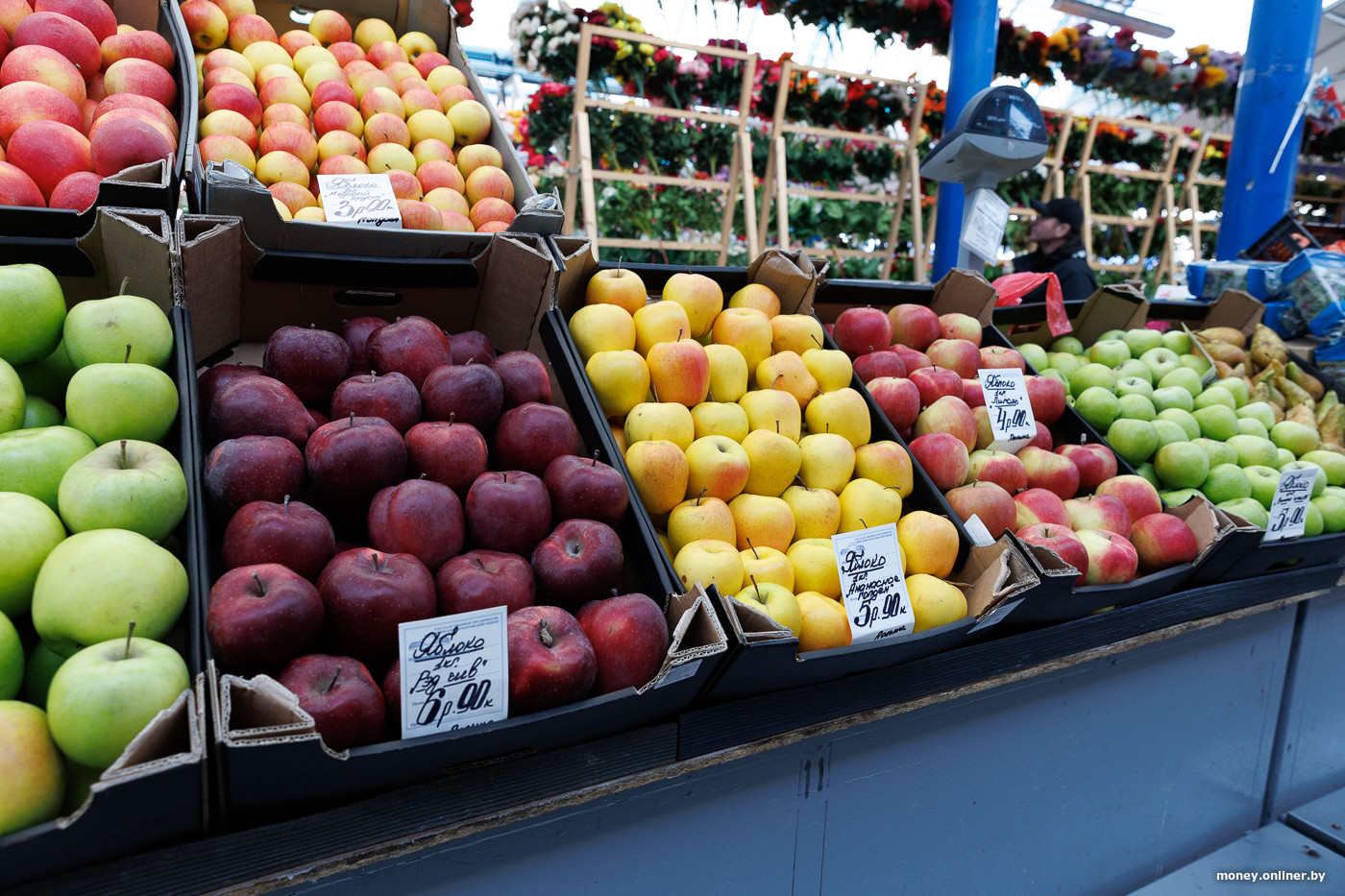 Что касается фруктов, то яблоки стоят 4—7 рублей за кило, гранаты — 12,9 рубля, последняя в сезоне хурма — 8,9 рубля, одно манго — 7 рублей.