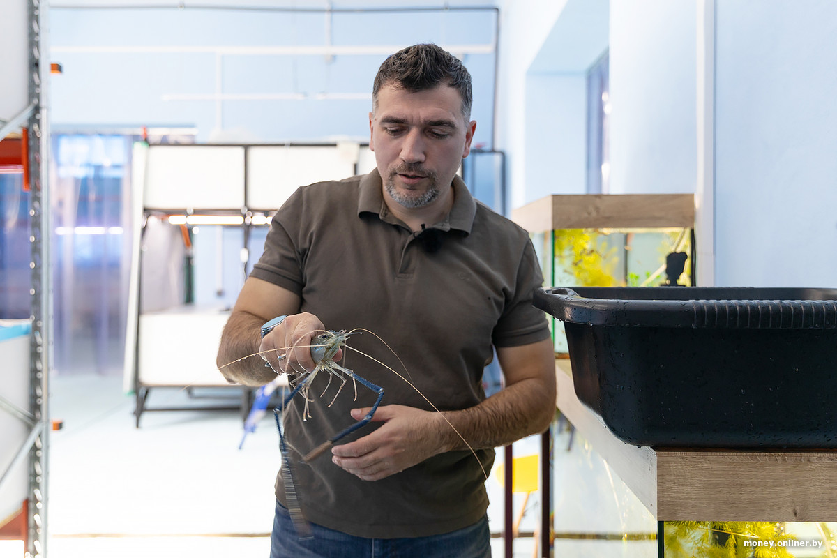 Со временем смелая идея с креветками и уже купленное здание полностью перевернули его жизнь: он вместе с семьей переехал из Москвы в Барановичи, иногда ночует прямо на ферме и знает десятки нюансов жизни креветок.