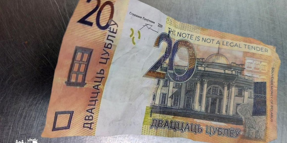 Очередная история с сувенирными деньгами произошла под Гродно. Продавец в магазине заметила, что среди выручки есть странная купюра. Оказалось, что это «дваццаць цублёў» — билет банка приколов.