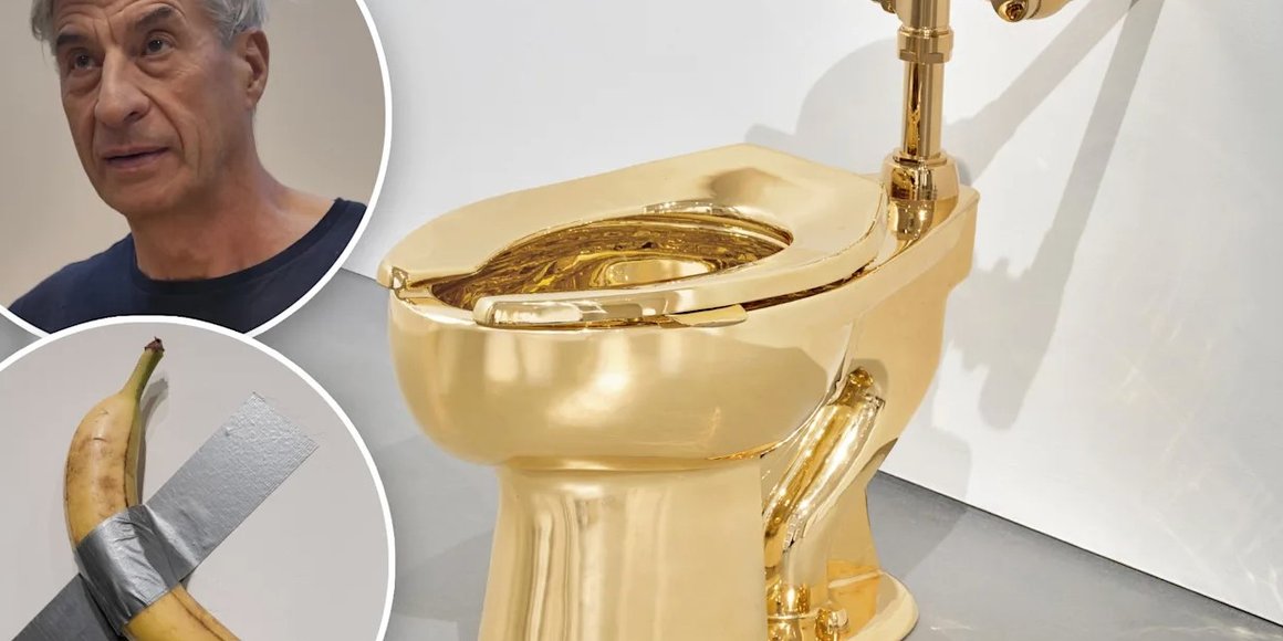 Художник Маурицио Каттелан удивил мир после того, как его банан, приклеенный скотчем к стене, прошлой осенью был продан на аукционе Sotheby's более чем за $6 миллионов. В этом году автор решил повторить успех, выставив на аукцион скандальный унитаз из цельного 18-каратного золота.